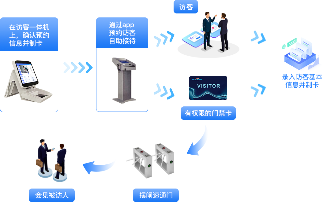 現有的訪客系統可對來訪人員進行有效快捷登記管理,掌握并管理單位來訪人員的動態(tài)。系統通過在出入口設置管理端實現對外來人員的到訪進行管制,對于來訪人員,系統通過掃描終端對到訪人員所持身份證進行登記,核發(fā)出入臨時卡,臨時卡權限由管理人員進行分配,也可于人員通道、門禁系統、電梯系統集成使用,更進一步的對訪客人員進行區(qū)域管制。 此舉可全面解決傳統手工登記中出現對很多問題,如登記訪客信息不完整,人員查詢費時,資料整理困難等。